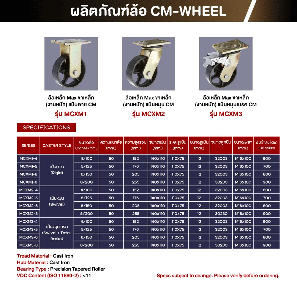 ล้อเหล็กMax งานหนัก – CM ของเราสามารถรองรับน้ำหนักการใช้งาน ตามการโหลดใช้ที่ระบุตามขนาดมาตรฐานสินค้าได้ตรงจริง มีมาตรฐานรองรับสูง ทำให้ผู้ใช้งานจริงหมดกังวลกับปัญหาที่พบกับสินค้าทั่วไปในท้องตลาด