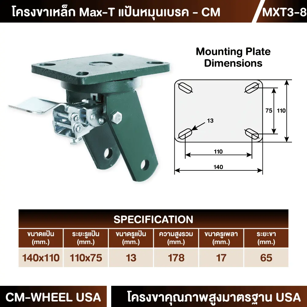 โครงขาเหล็กเชื่อมMax-T งานหนัก แป้นหมุนเบรค CM ของเราสามารถรองรับน้ำหนักการใช้งาน ตามการโหลดใช้ที่ระบุตามขนาดมาตรฐานสินค้าได้ตรงจริง มีมาตรฐานรองรับสูง ทำให้ผู้ใช้งานจริงหมดกังวลกับปัญหาที่พบกับสินค้าทั่วไปในท้องตลาด
