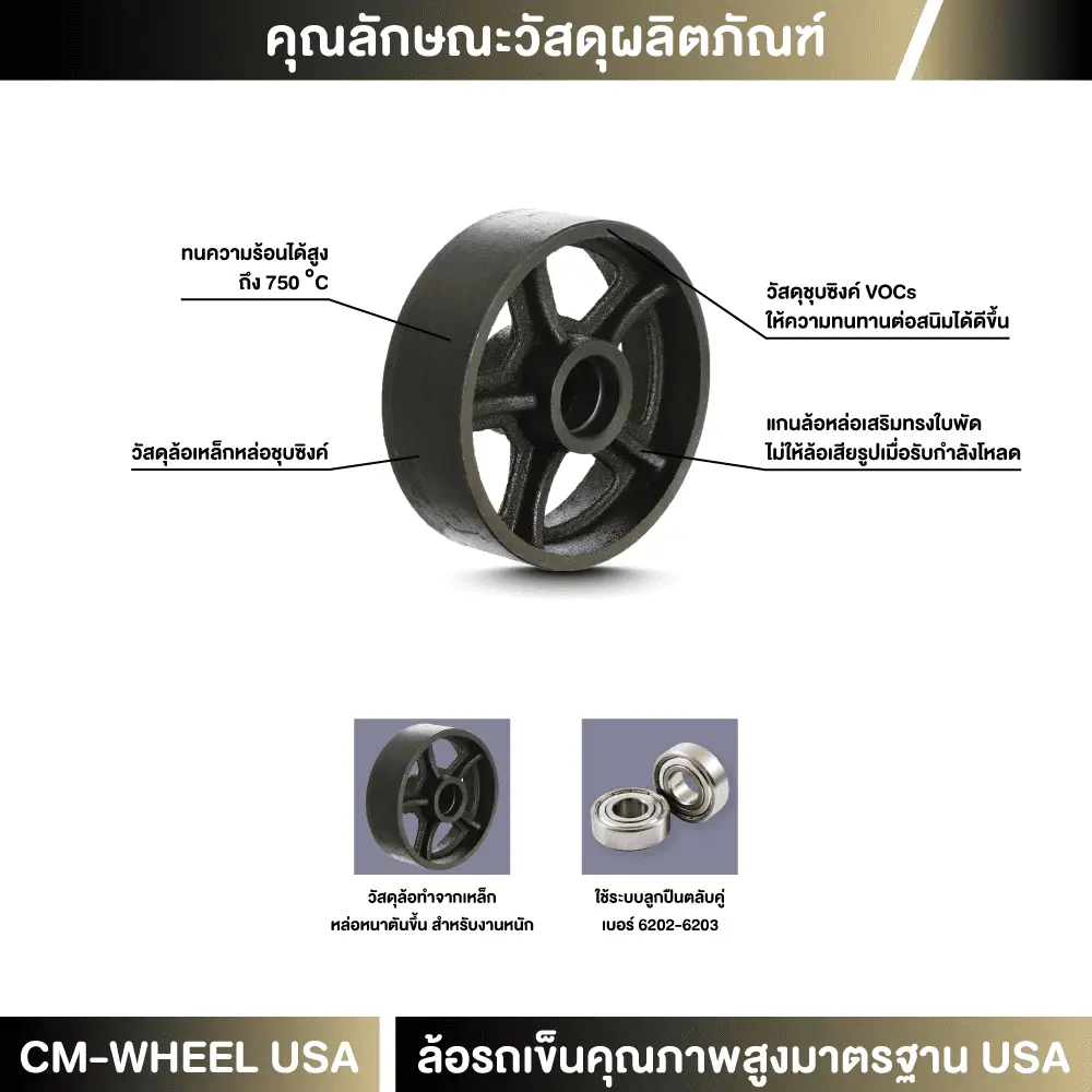 - วัสดุลูกล้อเหล็ก งานหนัก – CM แกนใบพัดกระจายแรงโหลด ใช้ได้ทุกสภาพแม้งานหนักมาก