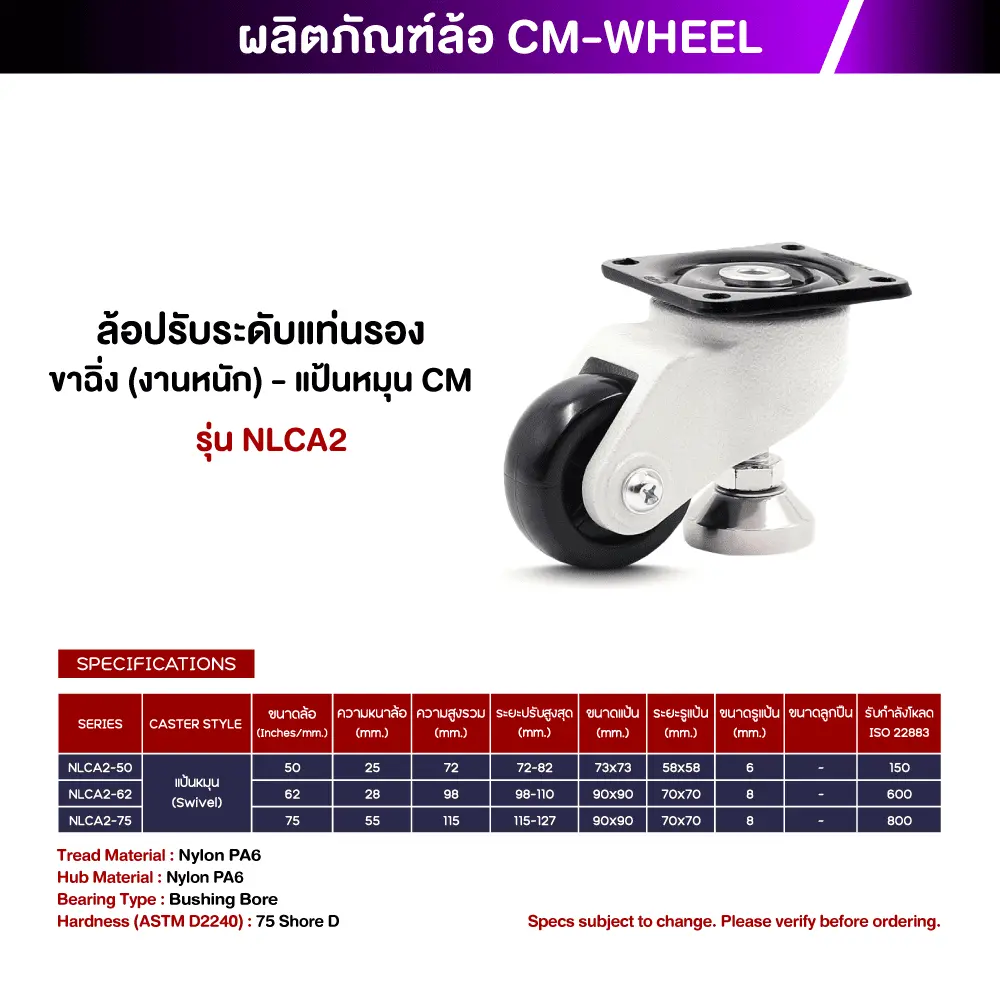 ล้อปรับระดับแท่นรองขาฉิ่ง งานหนัก – CM รุ่น NLCA2